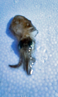 すまん悪いことしたがな♪とどかんとおもい放たれたホコくんが命中したアオリイカの子5cmぐらい