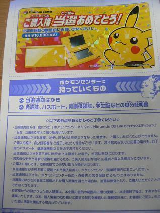 黄色のピカチューバージョンのDSを引き替えに行ってきますた。