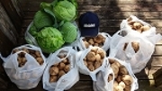 キャベツも収穫しました真ん中に野球帽子を置いて撮影しました