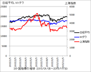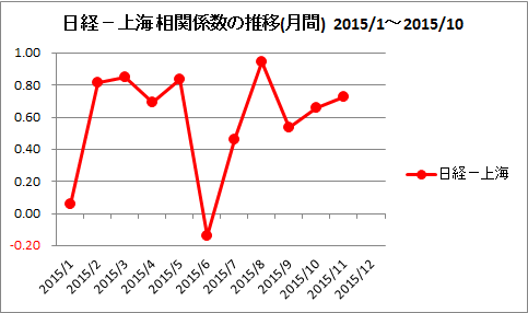 日経平均-NYダウ-上海 3市場の相関を計算してみた