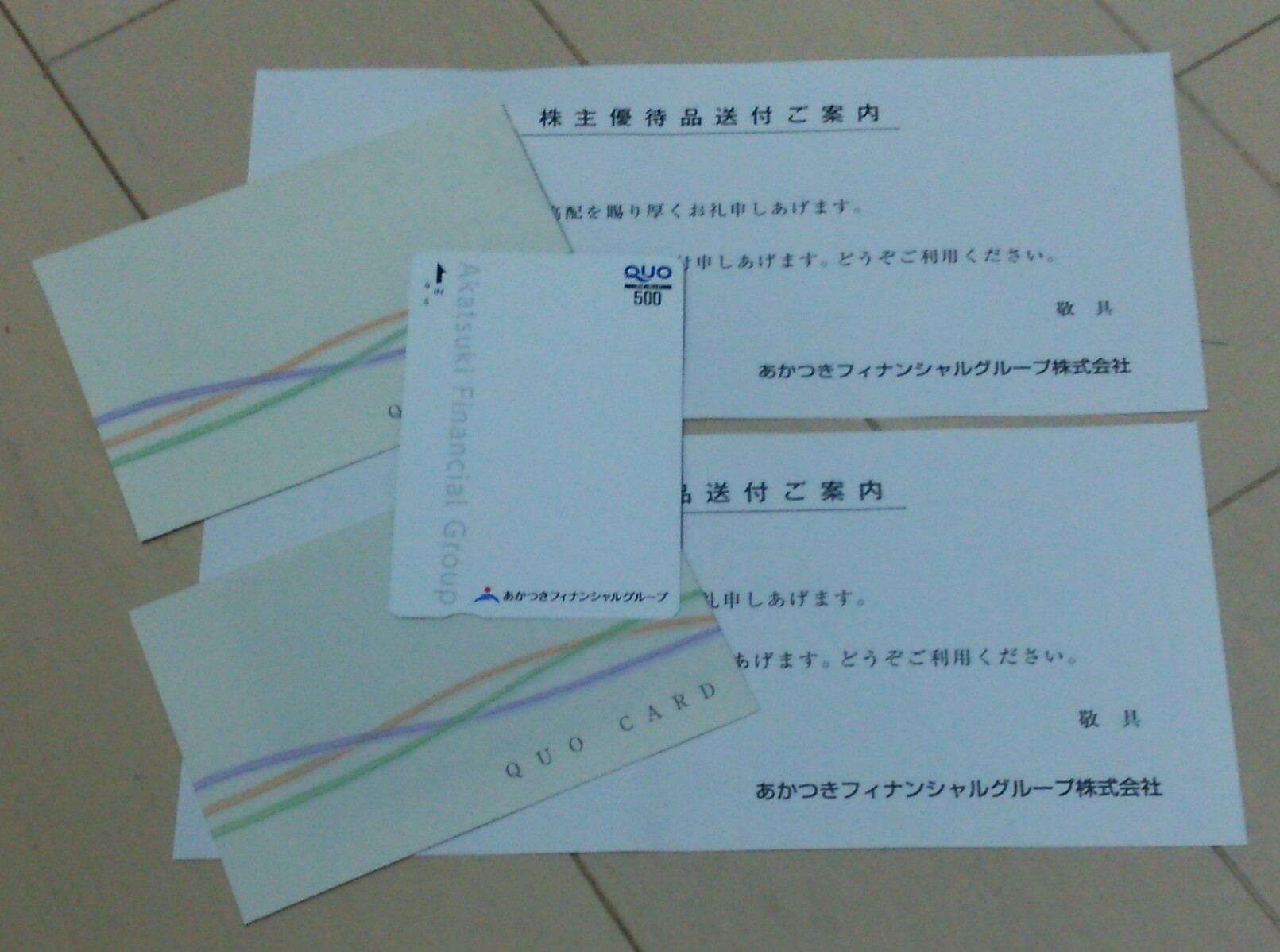 優待クオカ、2名義分が到着~(* ̄∇ ̄)ノ