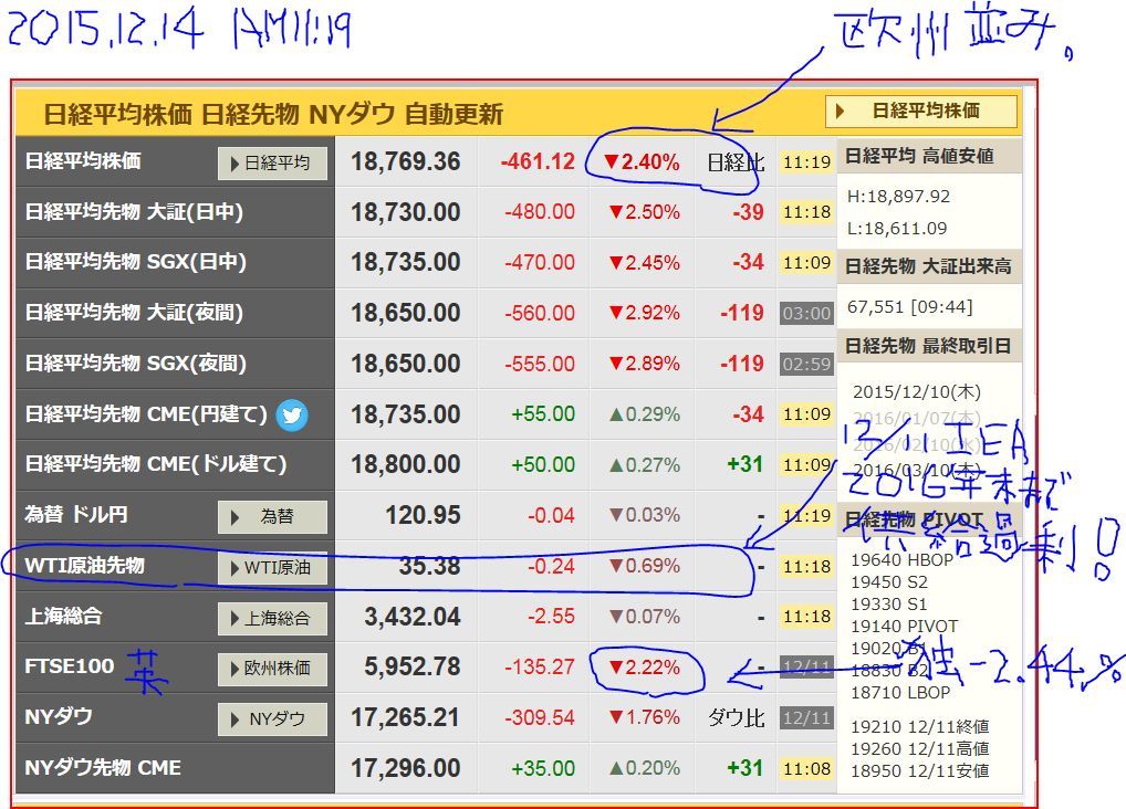 ^^^^^^12/13ブログ:喉元過ぎれば・・♪ 《日経 土砂降り!、FOMC難題、》