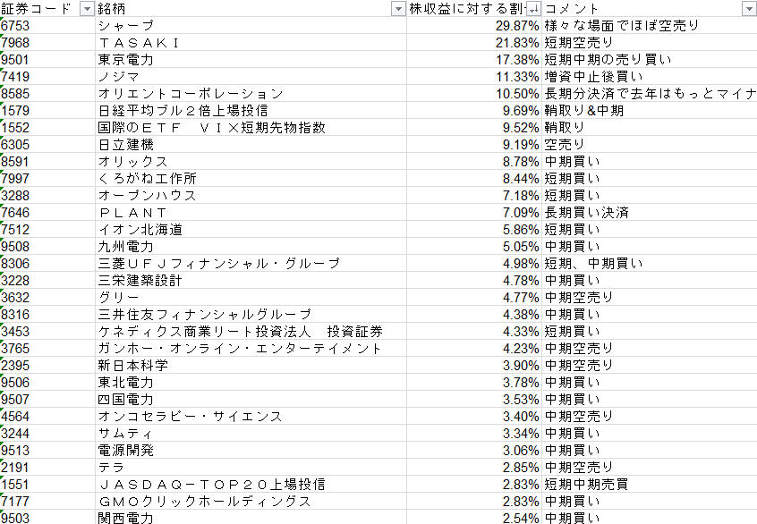 つまり、この中には現在もポジションを持っている銘柄がもちろんある。