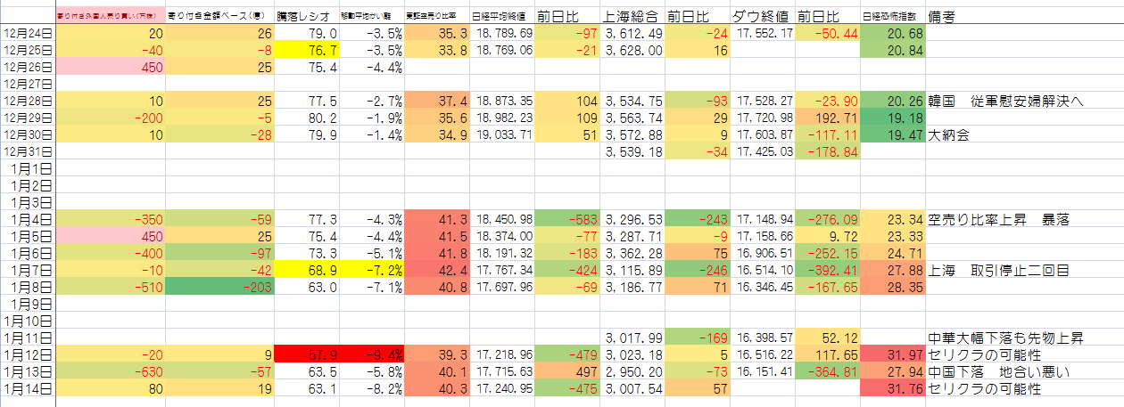 そんなに変わらんけど 徐々に底値に近付いてる感じだ。