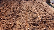 じゃが芋とじゃがいもの間に肥料を置いて砂で覆います