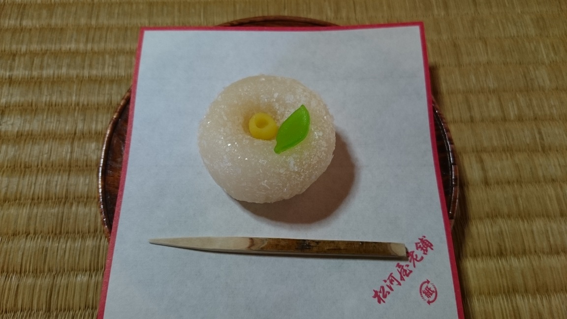 菓子は椿をイメージさせます。雪が降った淡侘助椿のように見えます。名古屋城