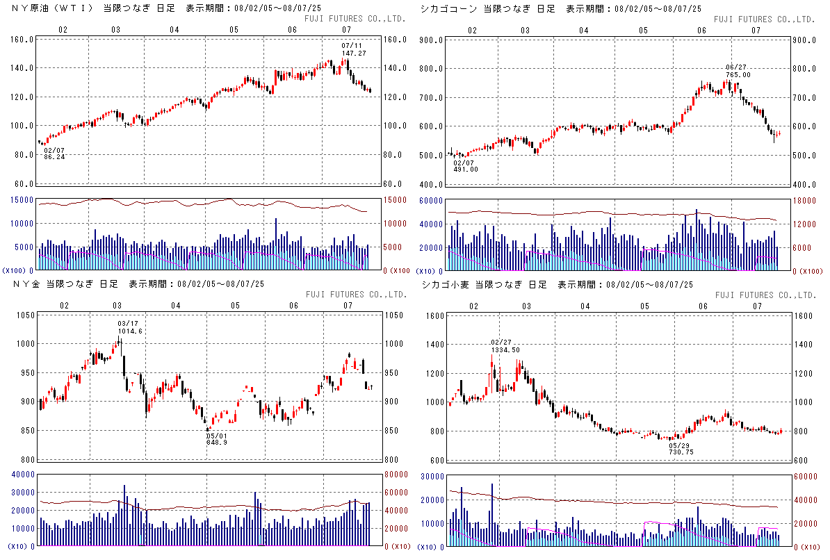 原油価格はジリジリと下がってきています。高値から下がったとは言え、水準自体は高いです。まあでも、投資家の心理としては、コモディティも買えないな・・・という雰囲気になってきている感じはします。