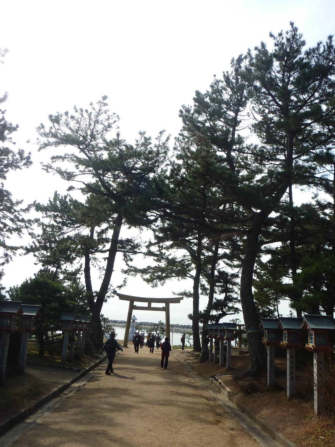 神さまはこの海からやって来て、鳥居をくぐり、神殿にお戻りになるとのこと