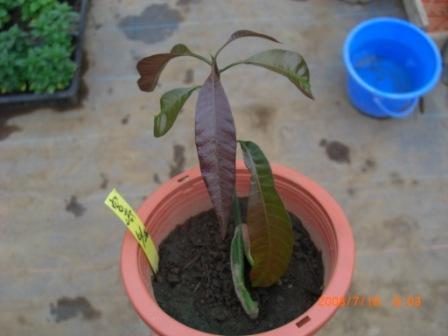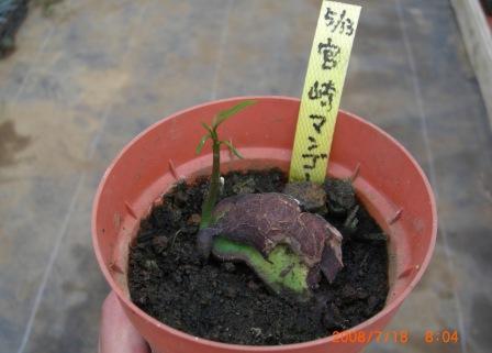 左の写真は5月13日に蒔いたマンゴーの種の67日後の様子です。