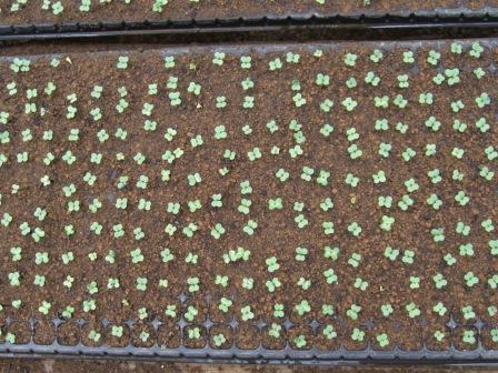 さて、写真右は蒔いて4日後のキャベツなんです。