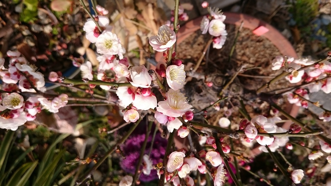 紅白咲き分けてくれる梅ですね。