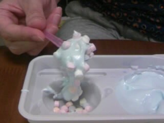 粉に水を混ぜて、それを練るとどんどん色が変わるっていう、子供が好きそうなお菓子です☆
