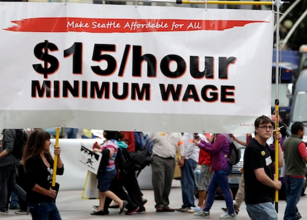 ↑アメリカでは昨年秋に最低時給15ドルが決定された州があります。