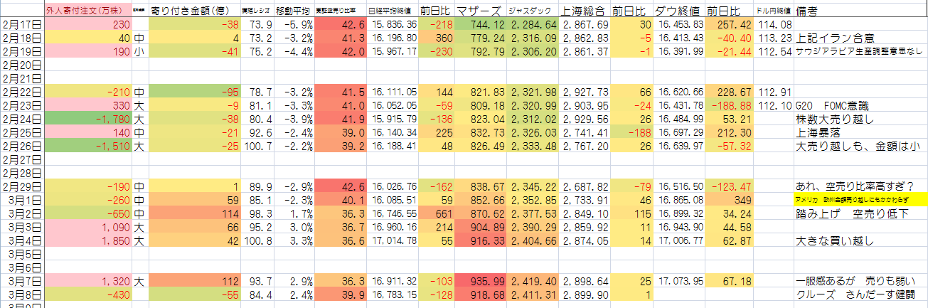 動きそうなこと、それから、空売り比率が結構上がったこと。