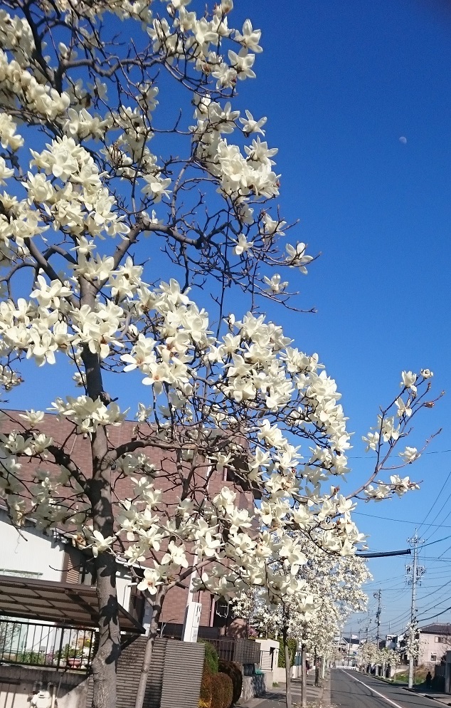 うちの会社の近くにあるハクモクレンも満開になって、ちょうど今が見ごろになっています。