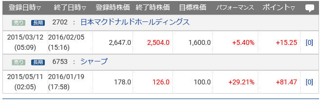 今回は1回目という事で、早速だが株価予想を終了した銘柄を紹介しておく。