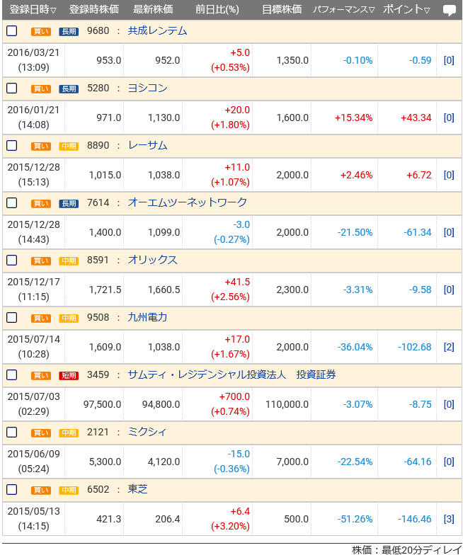今のところ、ポイント上では可も無く不可もなくといったところだが、個別で見ると大きく外しているのも少なくない。