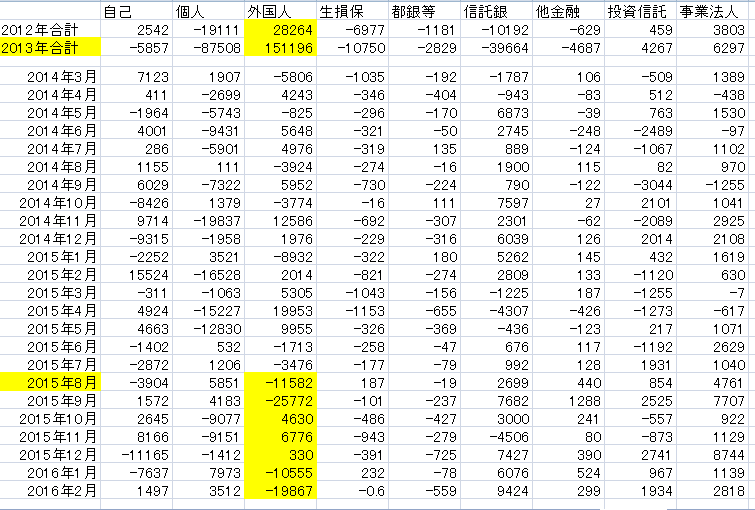 因みに2015年度の累計売り越し額は3兆円を超えますが、大半は先物で