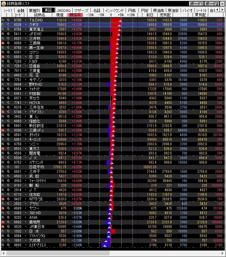 日経平均CME円建ては7時50分現在で16935円。前日日経平均対比で-68円。