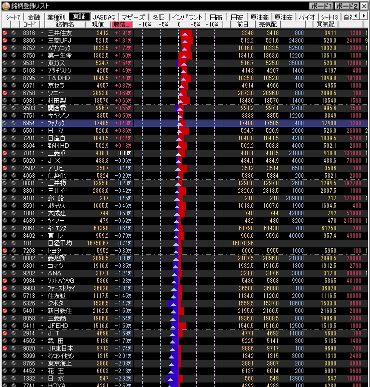 となると、昨日下げた内需関連株が上昇しやすい展開か。。。