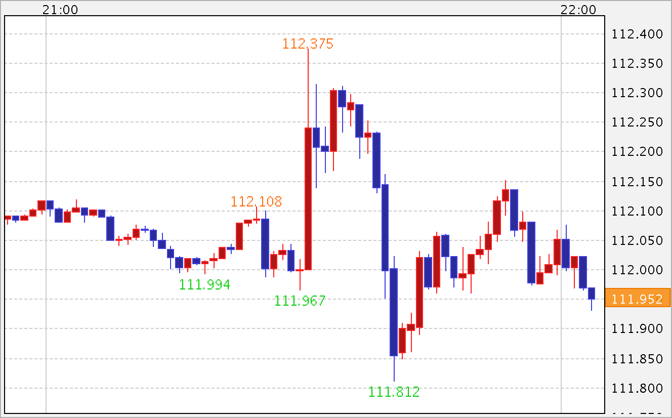 ↑発表直後のドル・円チャート。直後はドル買いも…。