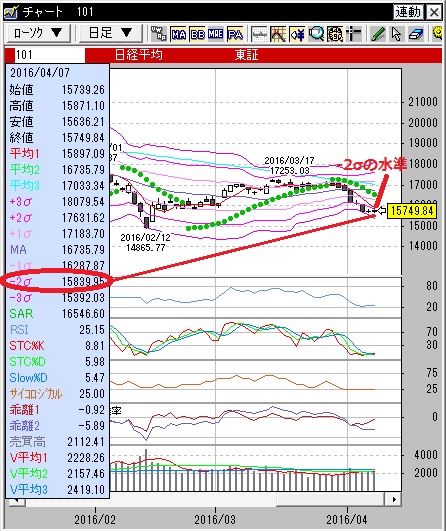 朝方には上昇する局面があったが、マイナス2σの水準で打ち止め。(別添ファイル参照)