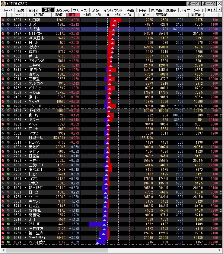 *別添え画像は前日の主要銘柄の株価変動を示す。