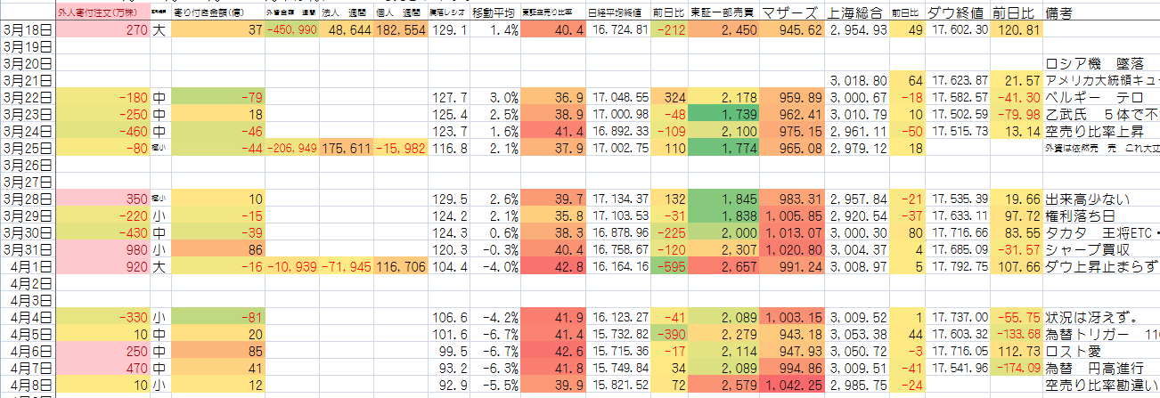 追記 空売り比率は修正しました。