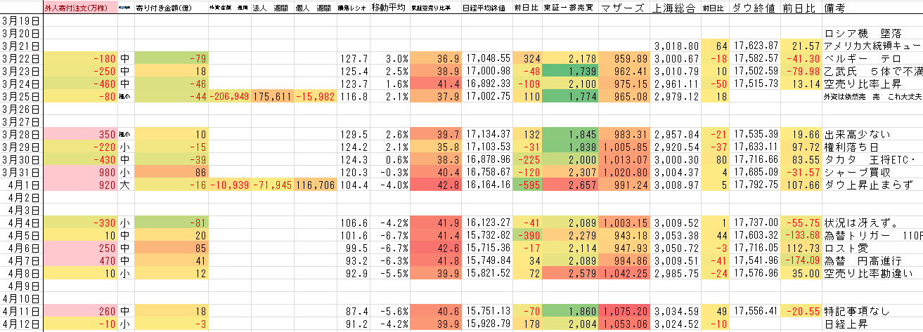 日経は 上昇するも なんか 意思のない相場だね。