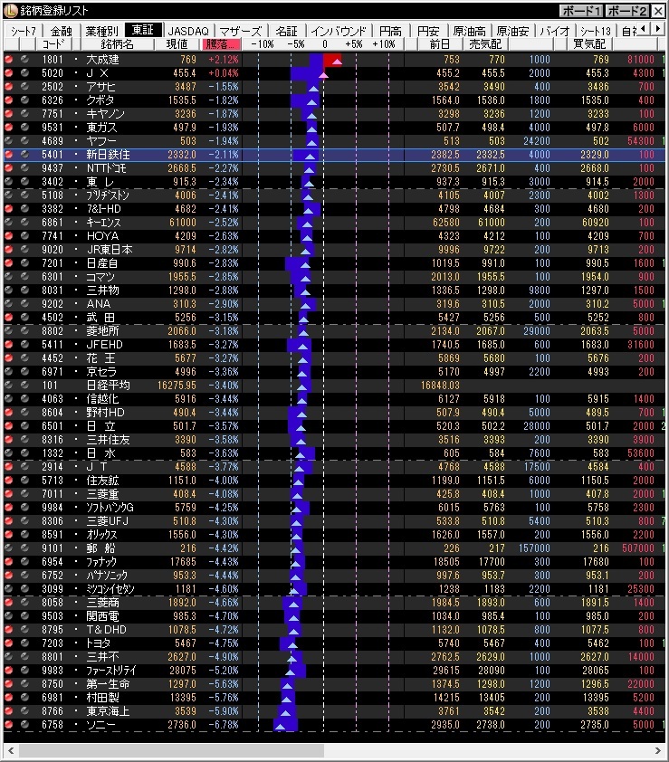 別添えの画像の通り主要銘柄で下げたのは、