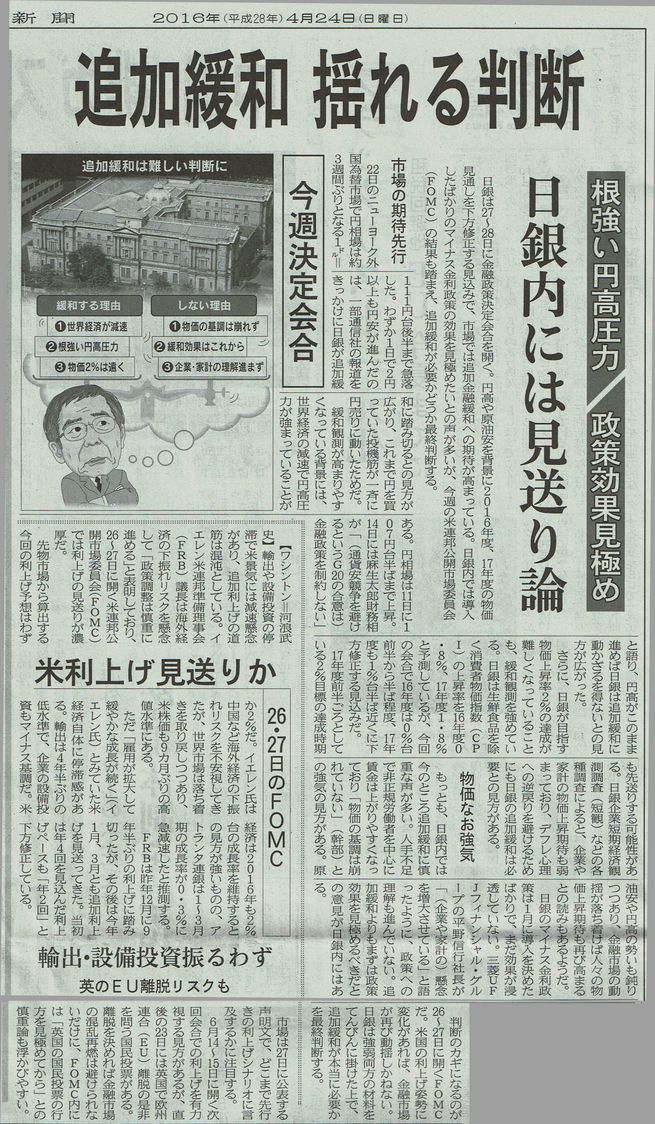 >日銀内では導入したばかりのマイナス金利政策の効果を見極めたいとの声が多いが、