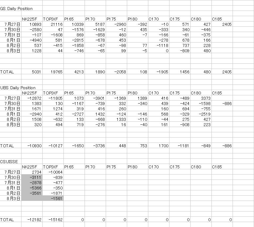 ・来週は、SQ。オプションやってる私にとっては、ドキドキの一週間です。貼ってある画像のように先物・オプションの手口を記録しているのですが、クレディスイスの売りがたまっていたり、GSやUBSのオプションの建玉が大きかったりと、激しく動きそうな感じがします。来週も、気を引き締めていきたいと思います。(グレーの網掛けは買い・売り手口が片方しかわからなかった、もしくは両方わからなかった場合。)