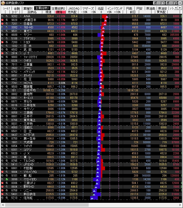 ②しかし、相場は重く午前中に一時16000円台割れ。