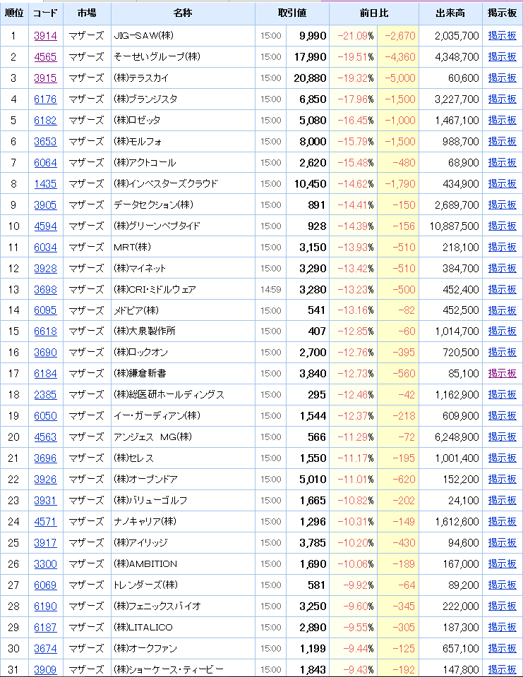 マザーズは大変なことになっていますが、