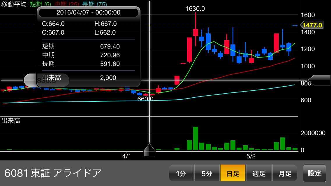 5/16株価1,477(+300)