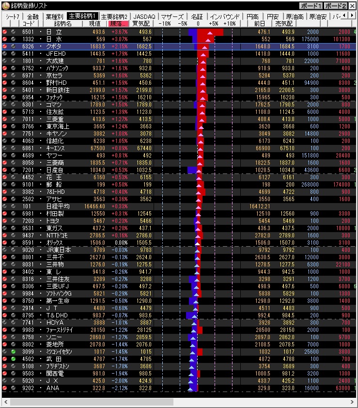 銀行株の決算の影響で弱いと想定していたが、財政政策、金融政策の期待感から強い相場展開で始まった。