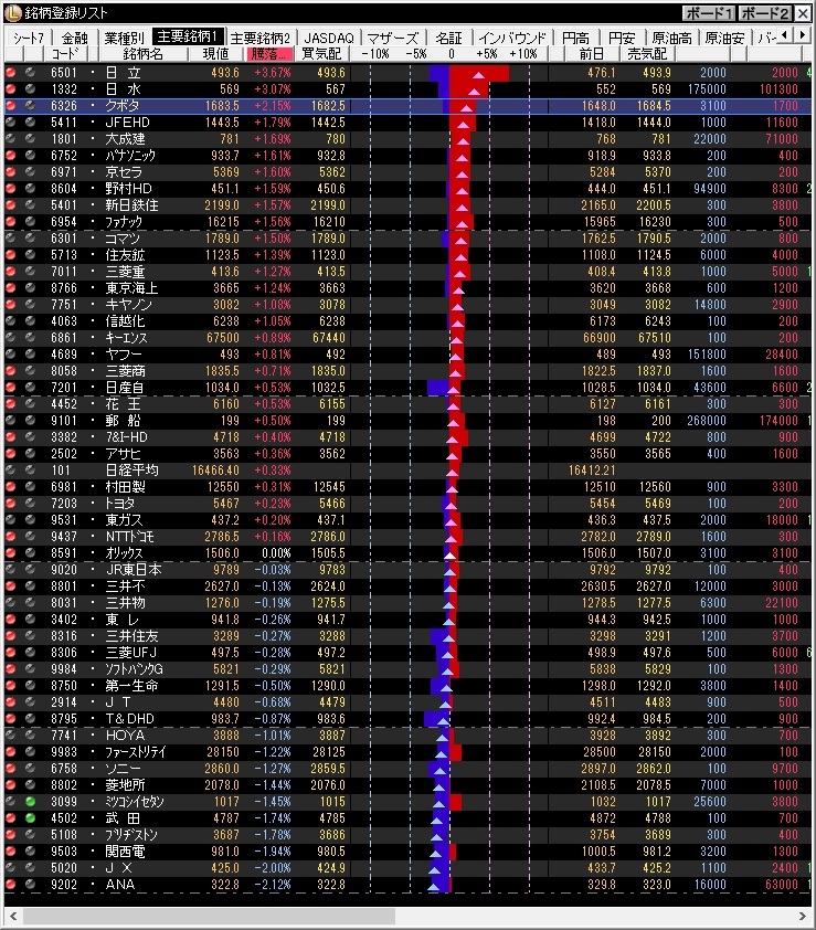 日本株は前営業日対比で54.19円安の16466.40円。