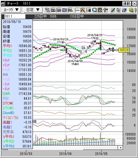 意識されるのはこれまで高値であった16800円程度でしょうか。
