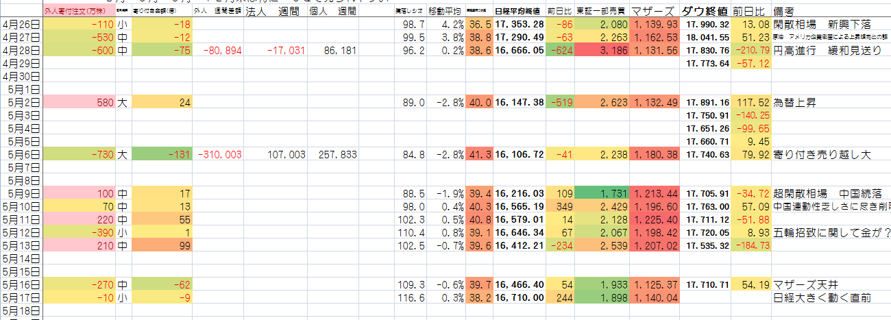 特記事項は出来高の低下。