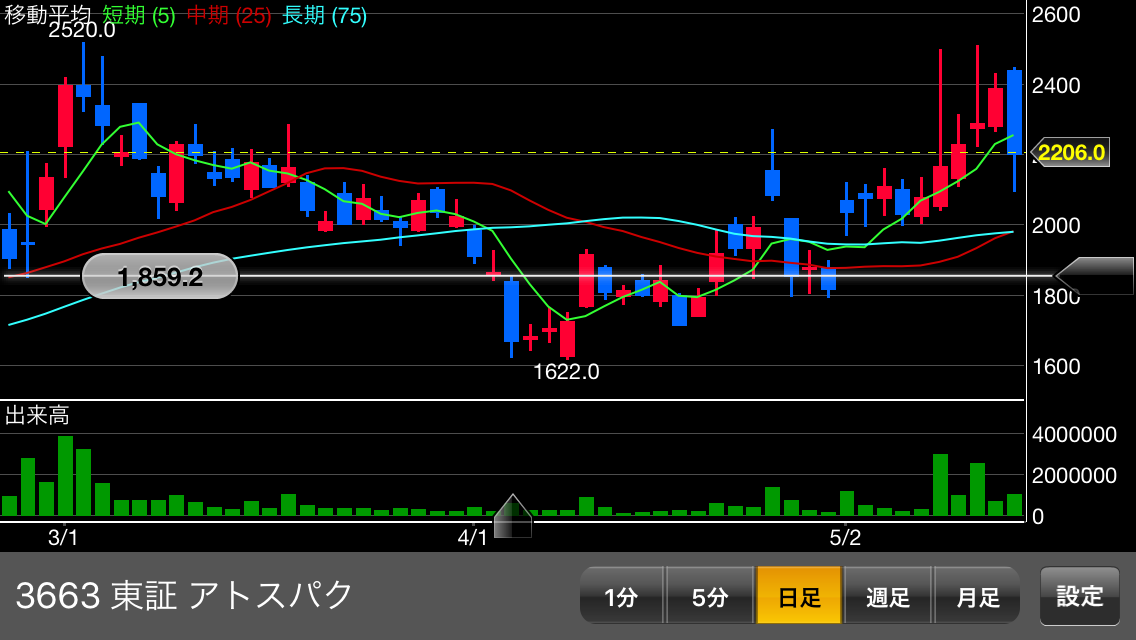 5/17株価2,388(+101)⇒終値2,300円上達成