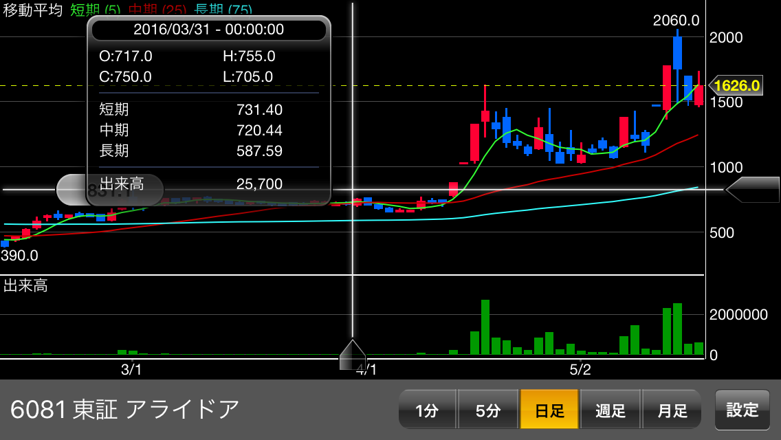 5/17株価1,777(+300)⇒終値年初高値1,630円達成