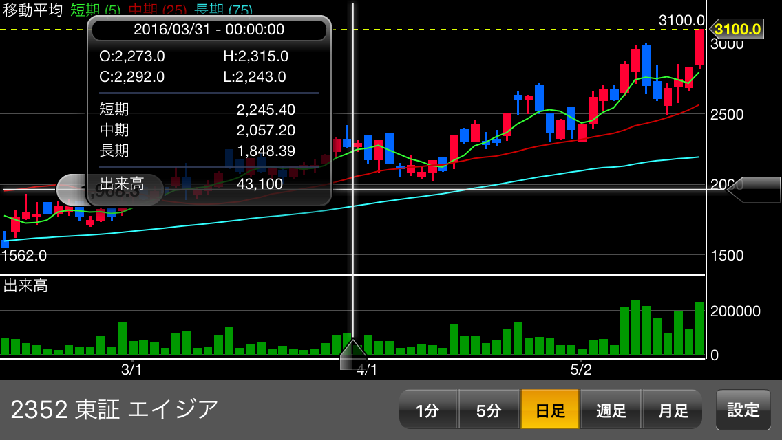 5/17株価2,388(+101)⇒終値2,300円上達成