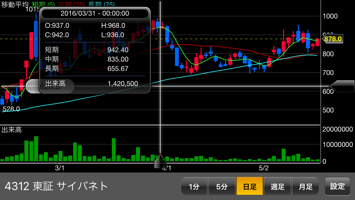 800円方向の下値模索到来。明日は時価近辺で踏ん張れるか。