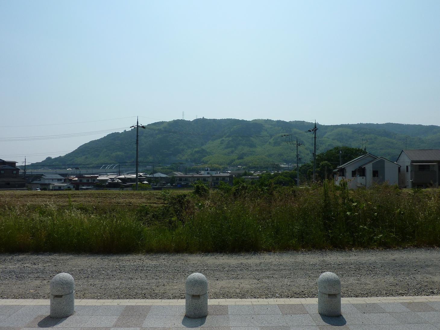 天王山(写真中央)とは、京都府乙訓郡大山崎町に位置する、海抜270mの山。