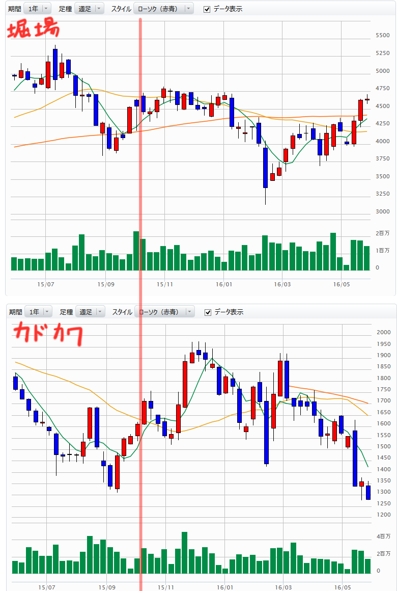 過去の予想を見ると、カドカワ・ドワンゴが一旦下がって上がると予想当てています。