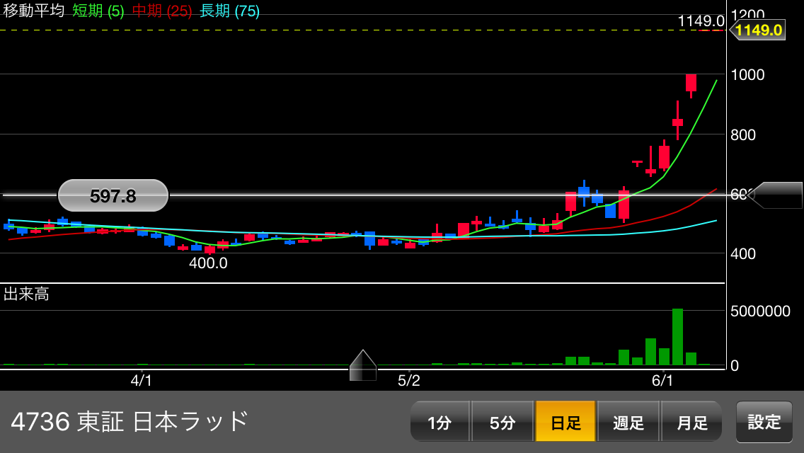 好業績5.5倍の上方修正。売買一巡から1,000円大台乗せ、大台乗せてから本格的な上昇相場。