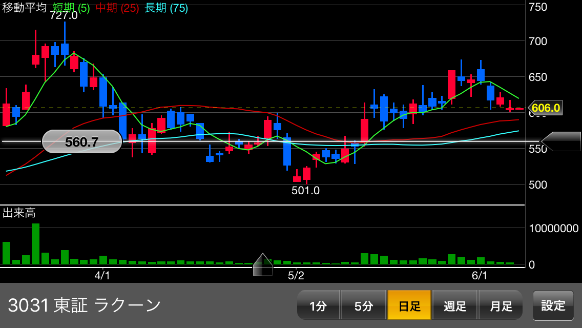 目先700円を下限目安に日柄調整、足場固めが出来るかどうかがポイント。