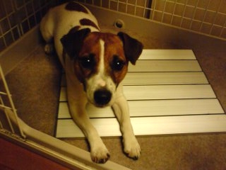 散歩から帰ってきたときに無理やりこの上に伏せをさせたのが良かったみたいです。