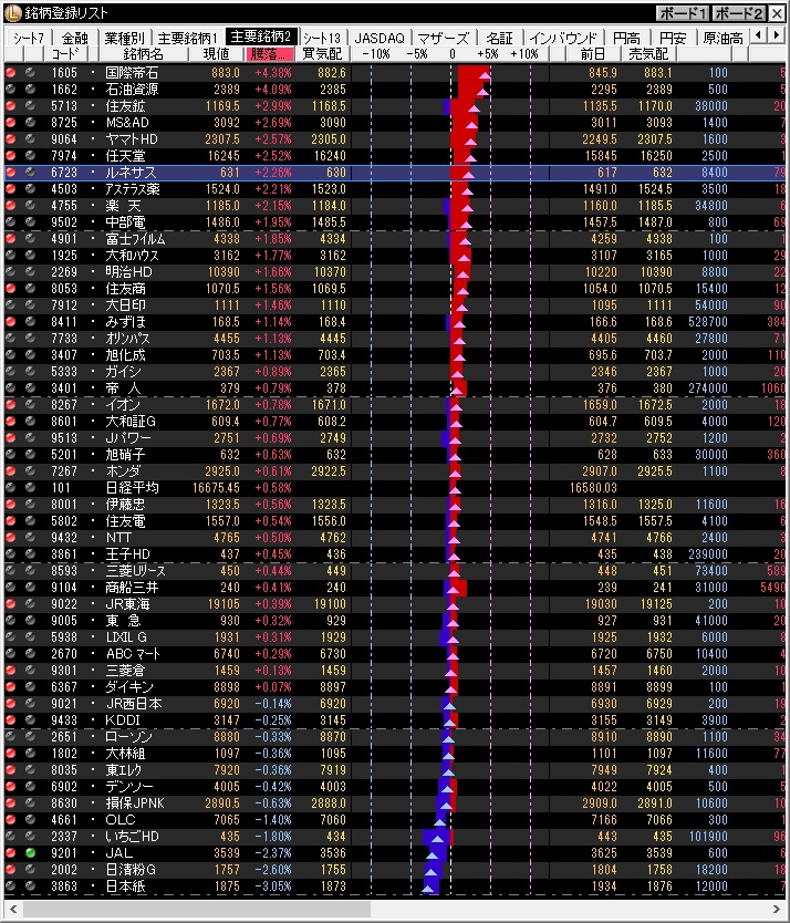 材料なく弱くなると想定していたが、今日は午後は弱くなることはなく強く推移。
