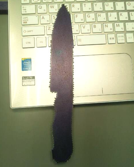 鉄をいらうのは苦手ですが、海で使ってるステンレスの小出刃包丁の刃こぼれが余りに酷いので先日会社の鋏研ぎ器で研いでみました。